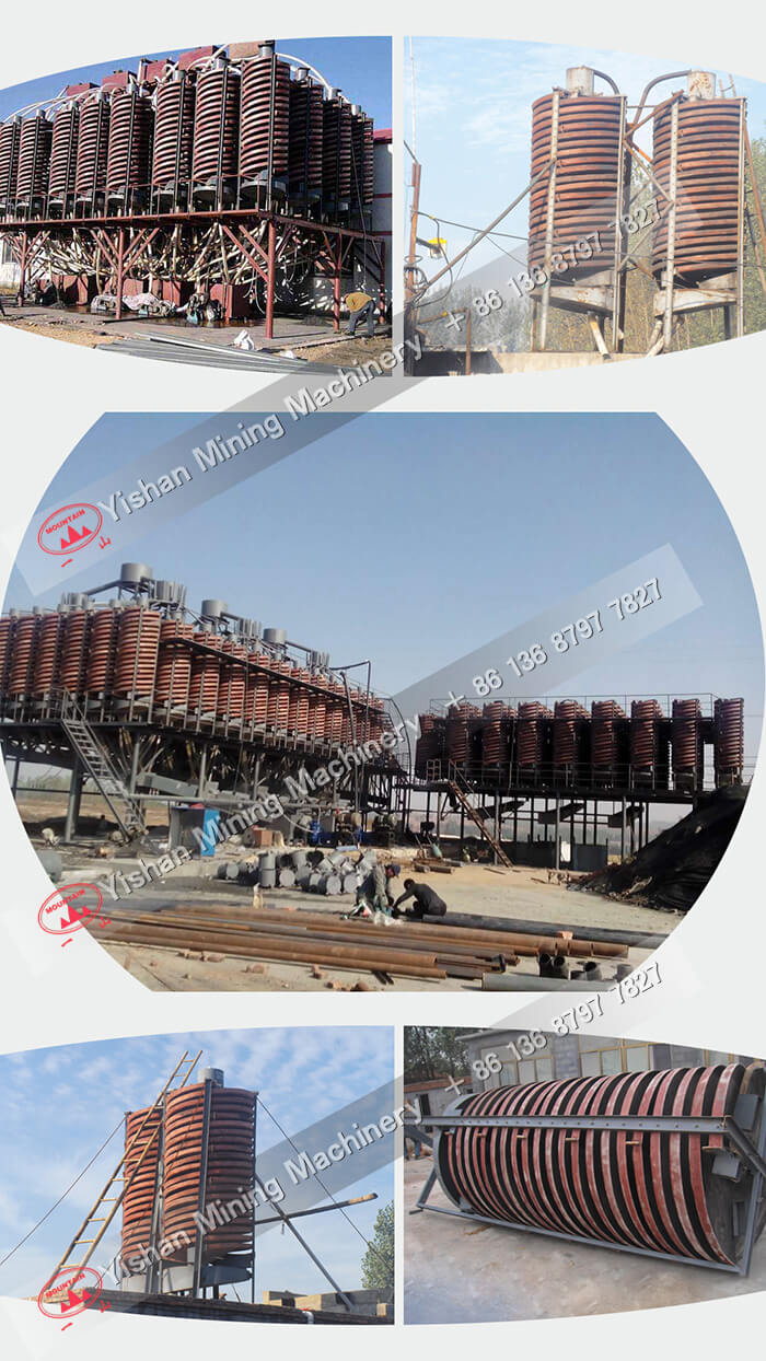 螺旋溜槽用于選別粒度0.3-0.02毫米細(xì)粒的鐵、錫、鎢、鉭、鈮、金礦、煤礦、獨(dú)居石、金紅石、鋯英石以及具有足夠比重差的其它金屬、非金屬礦物
