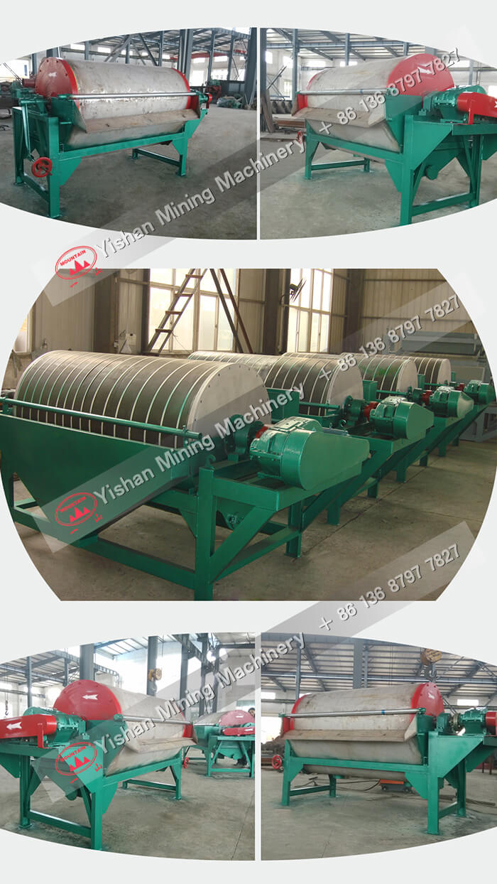 在給礦中磁性礦含量較低的情況下,即非磁性礦大于50%,逆流、半逆流、順流三種磁選機的選別工藝指標基本相同。當給礦中磁性礦含量高,即非磁性礦低于30%,順流式磁選機的選別工藝指標優(yōu)于逆流和半逆流磁選機。各種機型的磁場強度分九個等級,即:R級、A級、B級、C級、D級、E級、F級、G級、H級。用戶可根據(jù)選別礦物的種類、粒度、磁性和選別指標要求,選擇訂購相適應的機型和磁場等級。