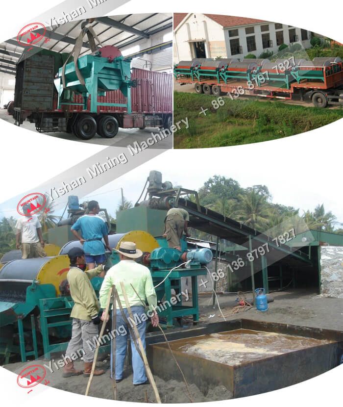 3、CTS順流磁選機:給礦方向和滾筒的旋轉方向或磁性礦物移動方向一致。礦漿由給礦斗直接進入到滾筒的磁系下方,非磁性礦粒和磁性很弱的礦粒由滾筒下方槽體兩底板之間的間隙排出,磁性礦粒被吸在滾筒表面上,隨滾筒一起旋轉到磁系邊緣排出,磁性礦排卸處裝有卸礦水管。順流磁選機對礦物選別的適應性較廣,選分空間暢通不容易阻塞,特別適用于含磁性礦物比例較大的磁選工藝。